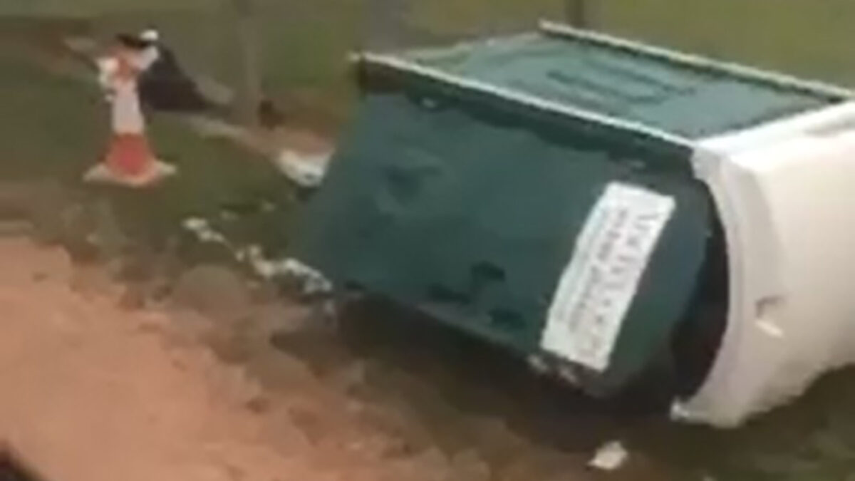 Een Dixi omgooien met iemand erin blijft te allen tijde vermakelijk