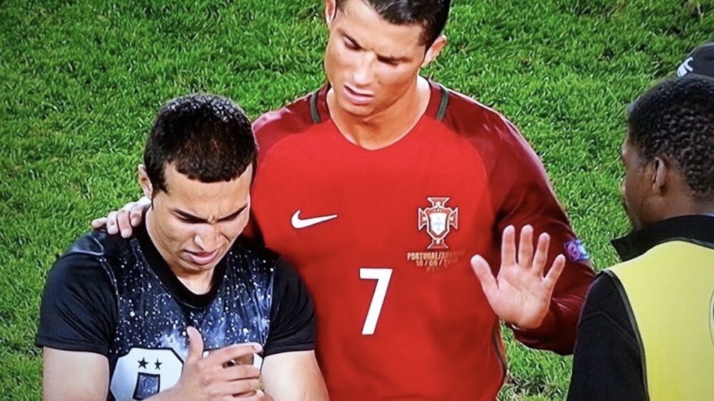 Oude doos: Cristiano Ronaldo houdt stewards op afstand om selfie te maken