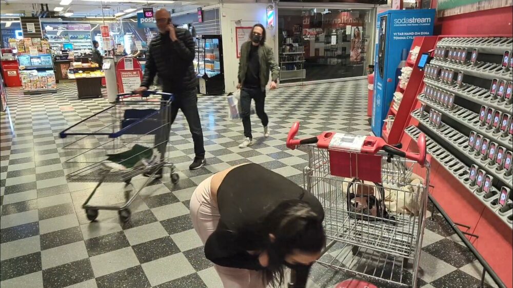 We zagen eerder al een heel gezin verbaasd omdraaien toen Zweedse Twitcher Ivy Sky op haar dooie gemakje boodschappen deed, maar vandaag zijn het alleen verbaasde mannen. Niet kijken, niet kijke.. nondeju THICC 🍑