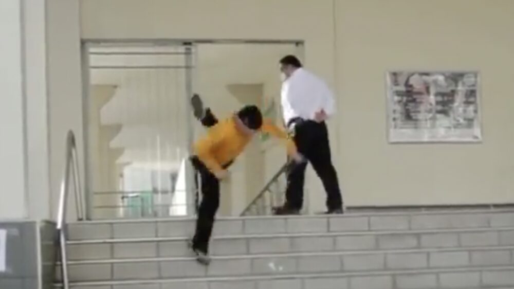 Dankzij een oplettende beveiliger kan deze skater bijna tandjes tuffen