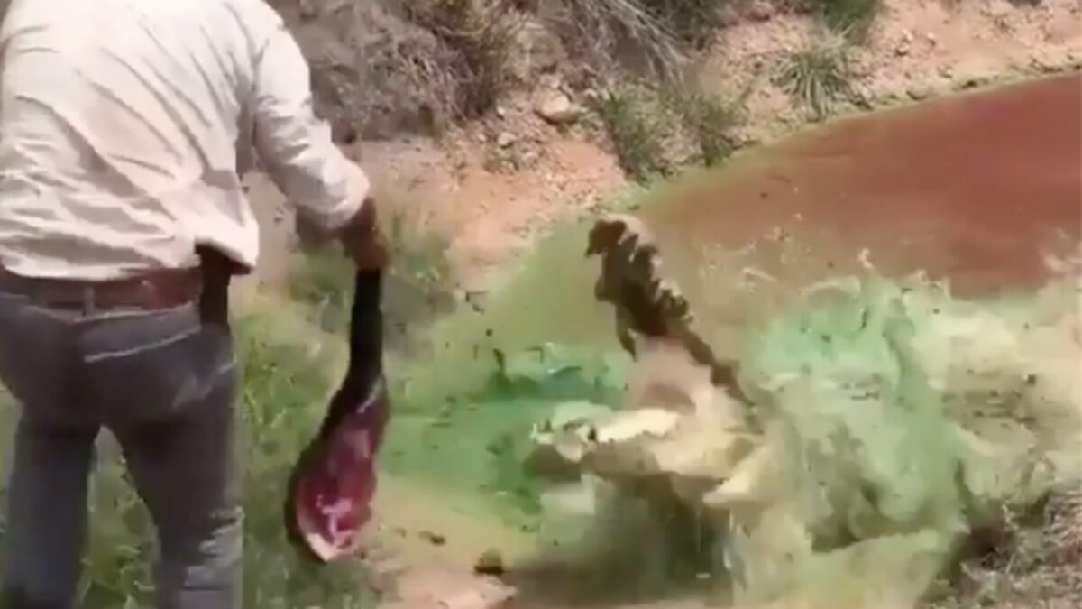 Een Australisch krokodilletje voeren is niet altijd zonder gevaar