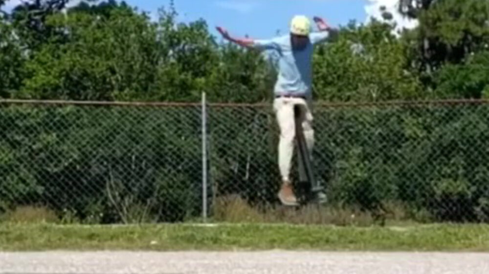Pogo-knakker doet zeldzame nutshot en faceplant tegelijk