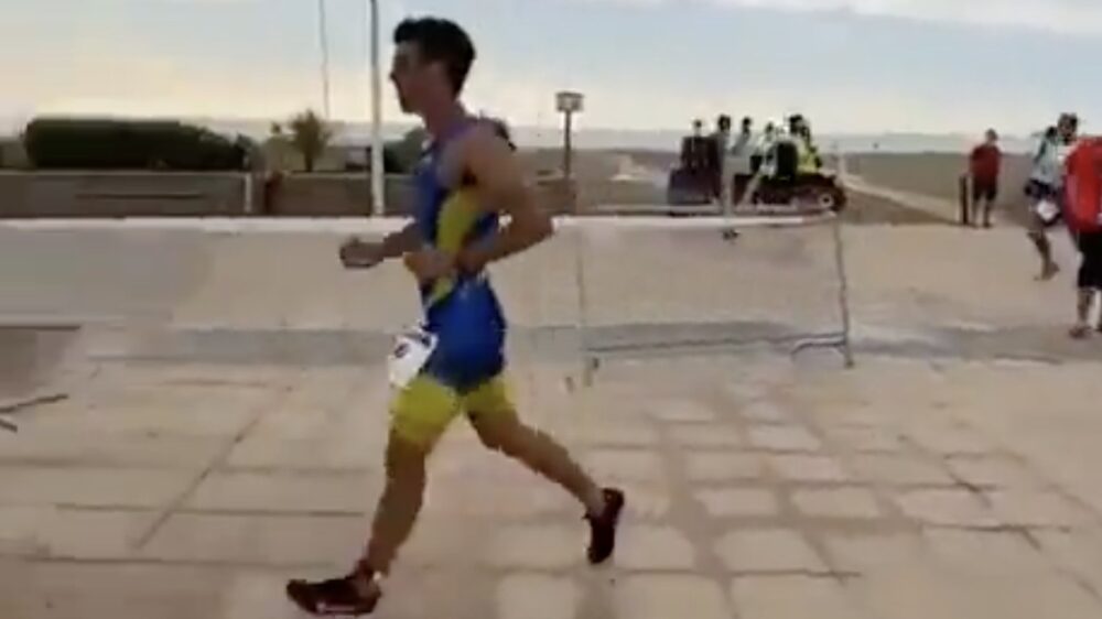 Vlak voor de finishlijn nog even een mooi dansje doen, want dat is leuk voor het familiealbum, komt deze atleet behoorlijk duur te staan 🤣