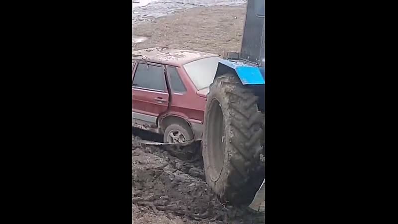 Vastgelopen Rus wordt uit de modder getrokken, kijk hem eens blij zijn! Fun