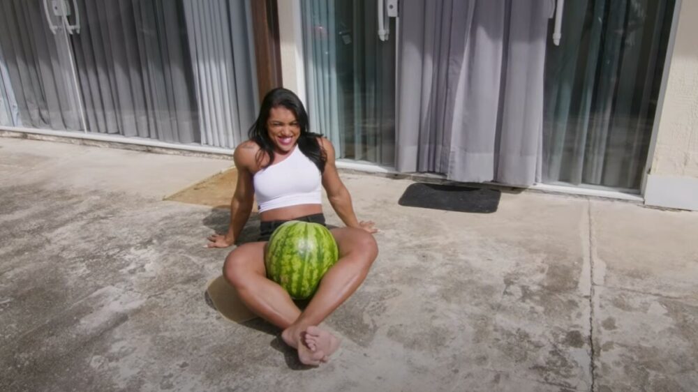 Braziliaanse Alessandra Alves verplettert watermeloenen met haar gi-gan-tische dijen