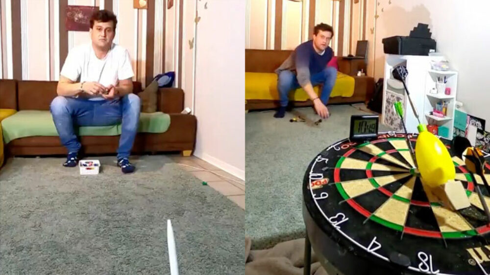 Je hebt mensen die kunnen mikken en je hebt deze gast. Oké oké, hij heeft ongetwijfeld een miljoenmiljard pogingen gedaan maar toch!