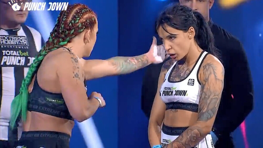 Het is niet alleen onze Russische pompoenklapper die er vol voor gaat, want ook deze dames gaan plankgas op die snufferd tijdens PunchDown 4.