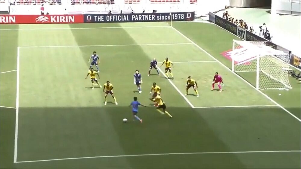 Japanse voetballer Takefusa Kubo schiet 4 tegenstanders door de benen en scoort