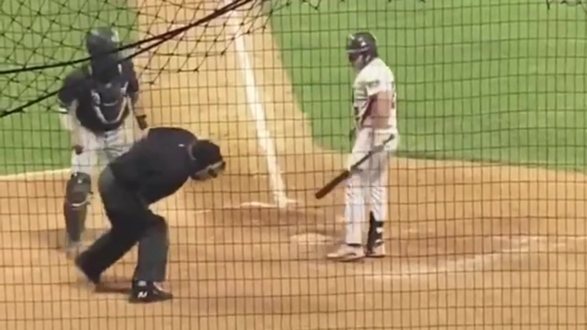 Scheids besluit een honkbal te vangen met zijn kruis Fails