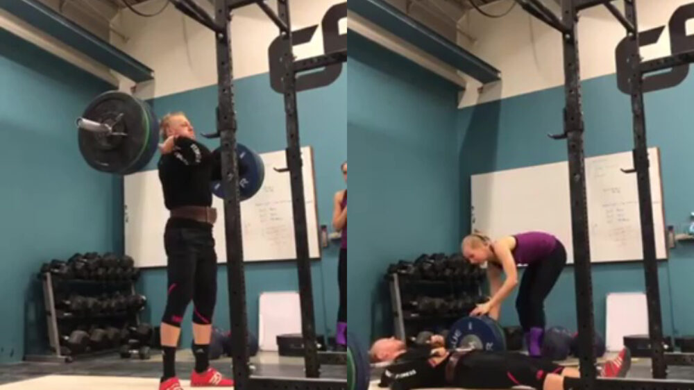 Voordat je het weet lig je met je bakkes op de grond en kan je vriendin de halter weer van je af tillen.