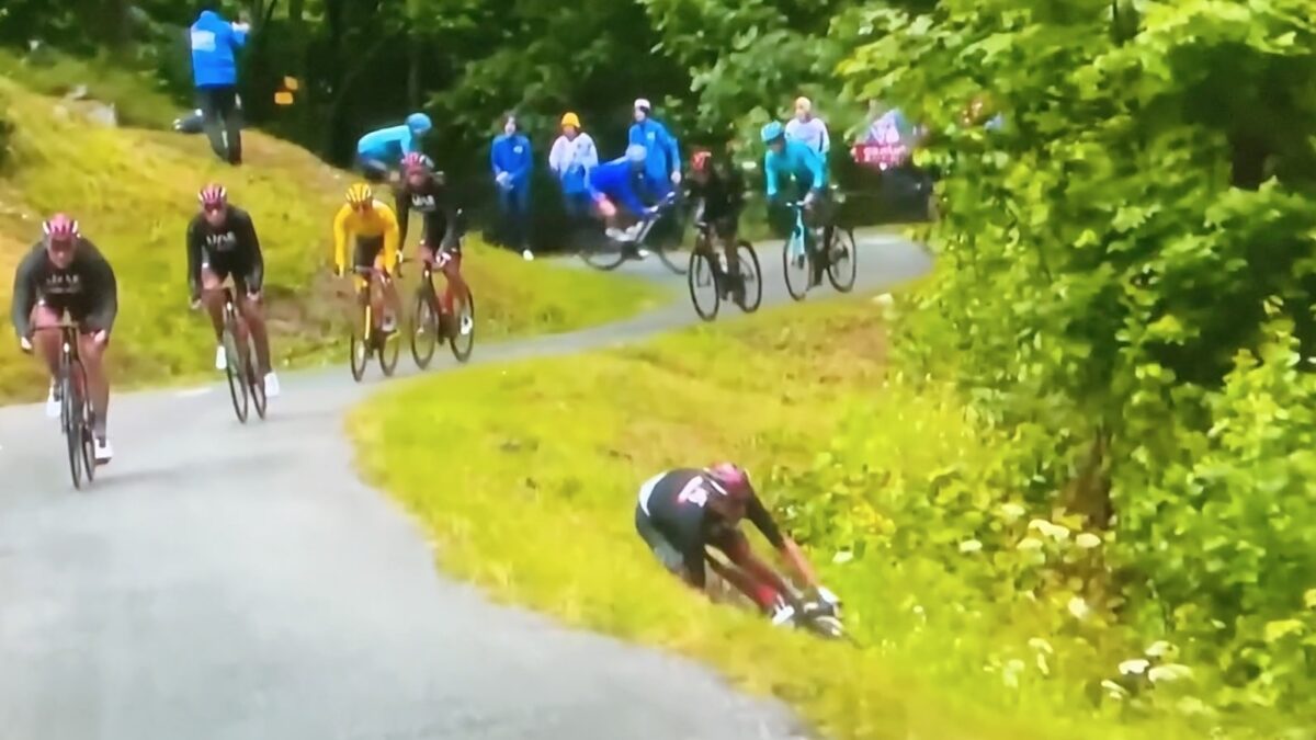 Foutje bedankt: Brandon McNulty verdwijnt in de berm tijdens de 9e etappe van de Tour de France Fails