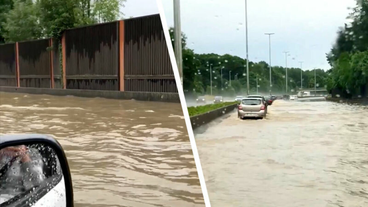 Amaaiiii! 'Straffe' beelden uit Aalst waar een flinke wolkbreuk ervoor zorgde dat onze zuiderburen gisteren niet rijdend naar hun familie gingen, maar gewoon het pondje op de E40 konden pakken.