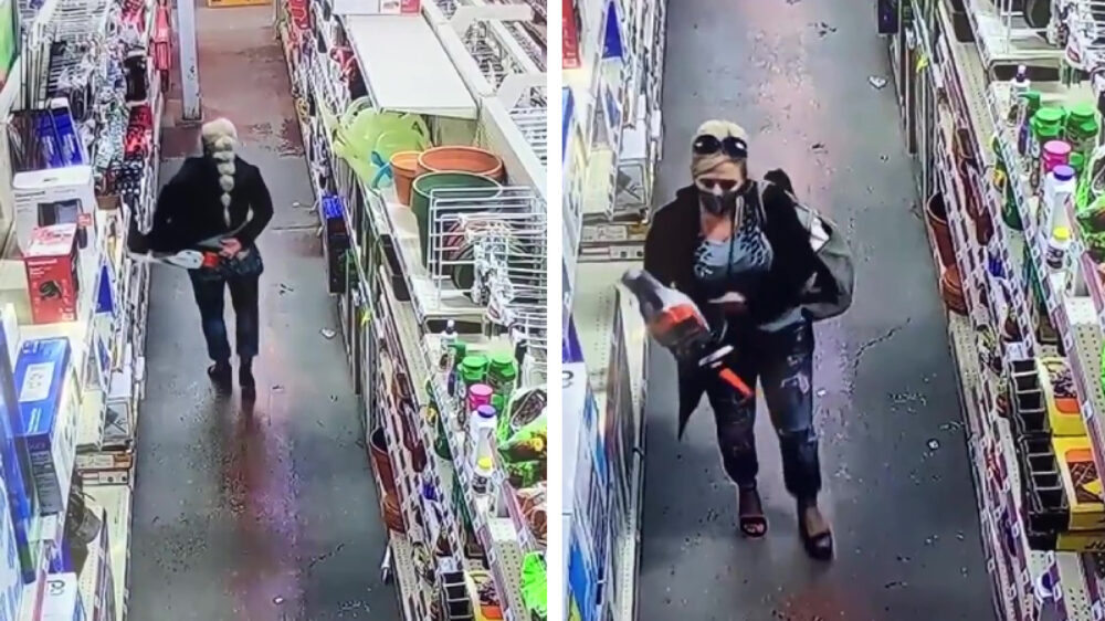 Van alle ideeën die je als #dief kunt hebben is het stelen van een kettingzaag door 'm in je broek te stoppen wel de meest kansloze. Gebeurde bij deze Idaho Lumber in Hailey, Indiana (Amerika). Uiteraard werd de dame betrapt, waarna ze nog steeds dappere poging deed om door te lopen.