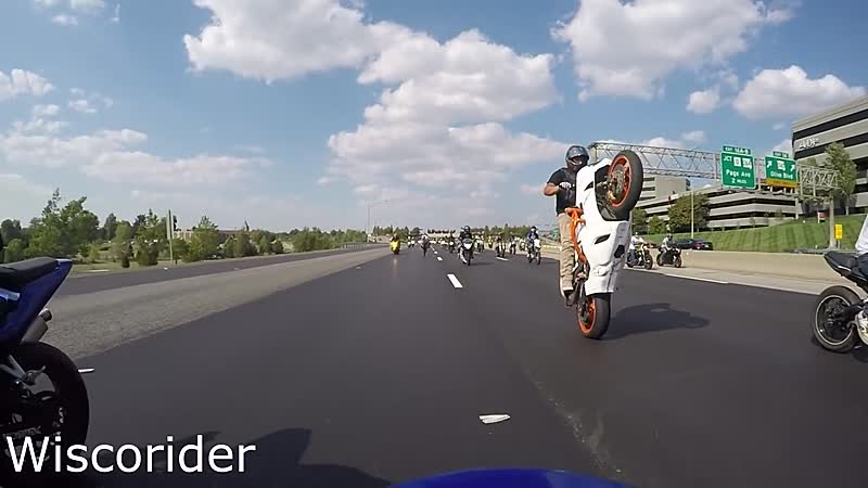 Motorbink probeert indruk te maken op motorbende met een zieke wheelie Fails
