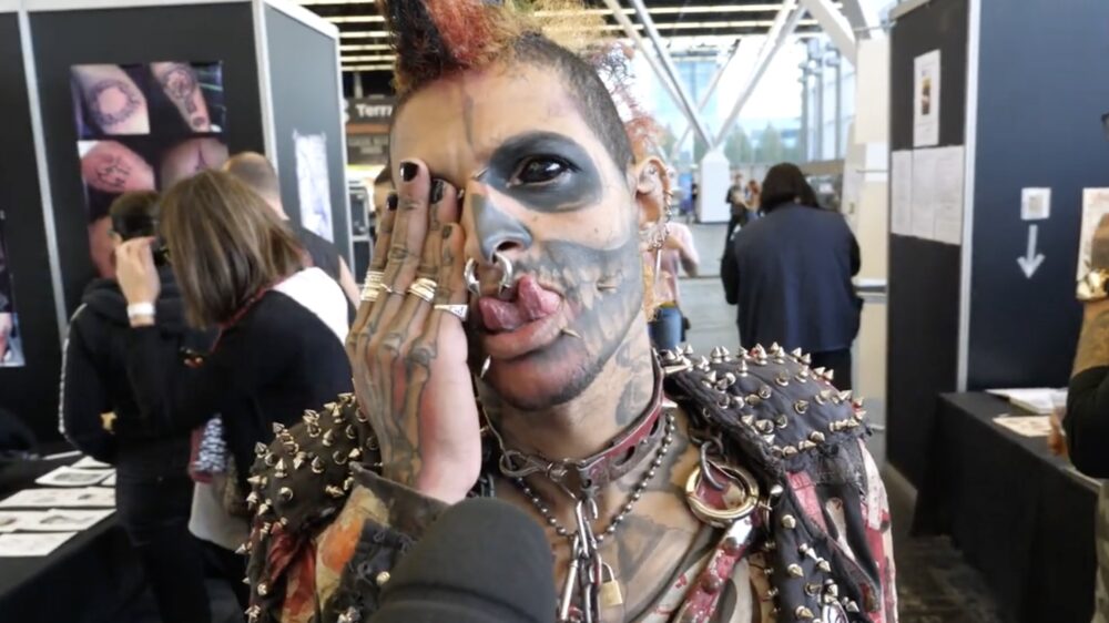 Buitenbeeld bewonderde levende kunstwerken op de Tattoo Convention 2019