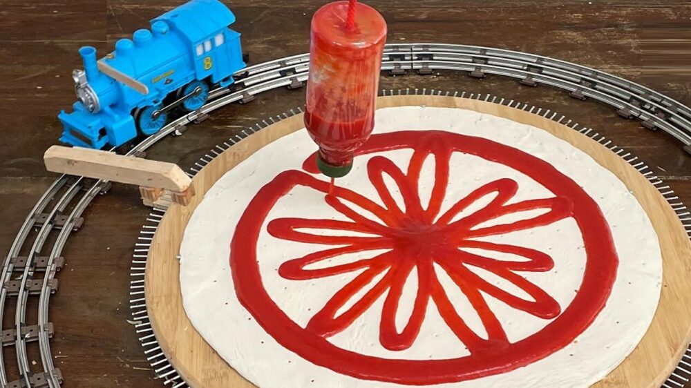 Met je speelgoedtrein automatisch pizza's maken en ermee in je gezicht laten swaffelen tijdens het eten. Waarom hebben wij dit eigenlijk nooit eerder bedacht?