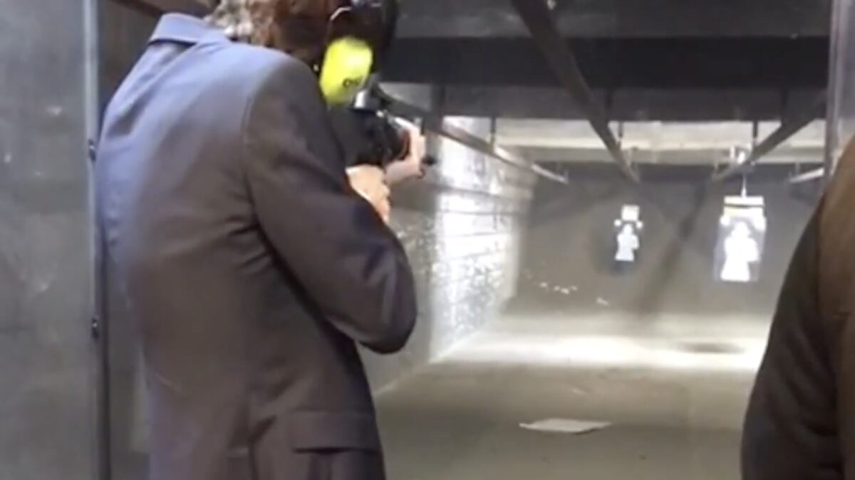 [...] waarop is te zien hoe huidig Tweede Kamerlid Freek Jansen met een semi-automatisch vuurwapen schiet op een menselijke afbeelding, waarbij de naam van premier Mark Rutte valt. Bron Hpdetijd.nl