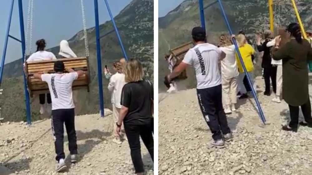 Russische schommel boven 2.000 meter hoge klif breekt af, 2 vrouwen kukelen naar beneden