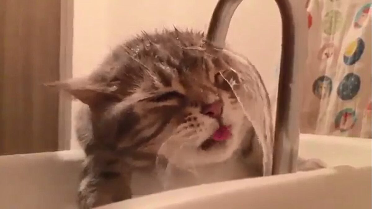 Poesje heeft de nodige moeite bij het drinken Dieren