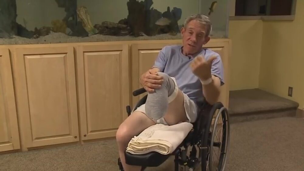 Iemand de film 127 Hours gezien? Soortgelijk gevalletje WTF, dit: tijdens het werk op zijn land kwam boer Kurtis Kaser (63) met zijn been vast te zitten in een soort van graanversnipperaar. Zo'n ding lust ook benen, dus zag hij zijn linkerbeen langzaam in het apparaat verdwijnen. Hulp inschakelen bleek geen optie, want zijn telefoon lag nog thuis.