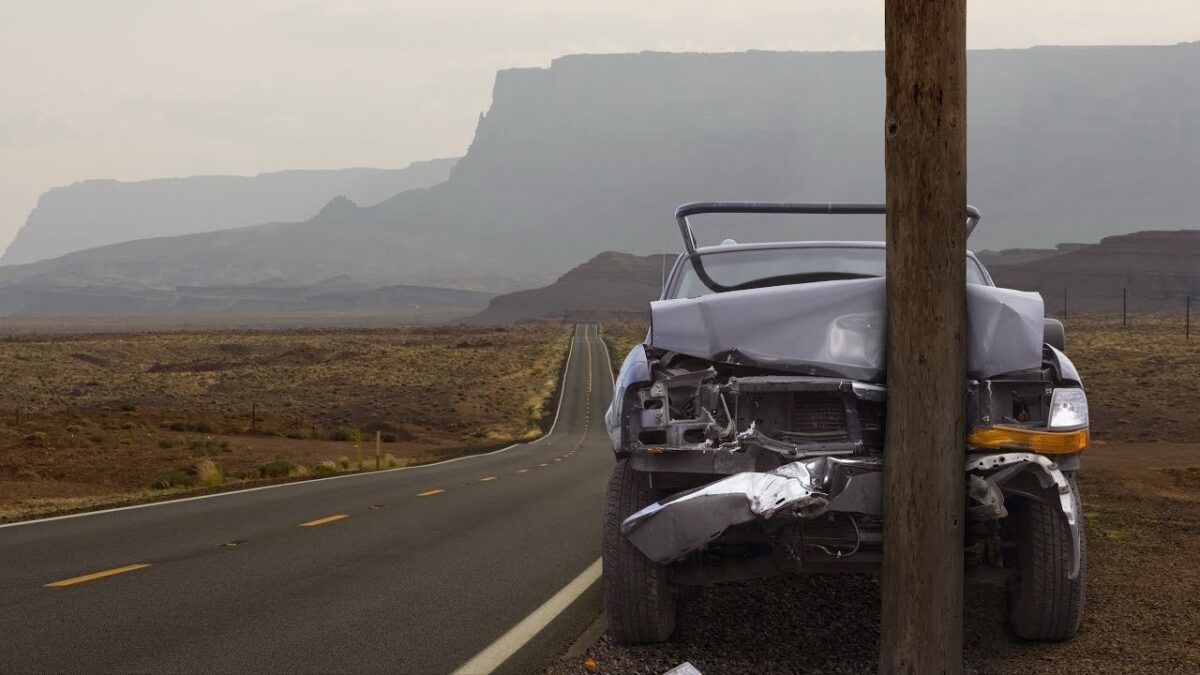 Een verzameling weggebruikers die vol tegen een verkeerspaal vlammen