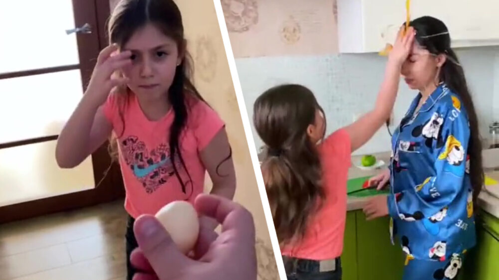 Oké, het riekt wellicht een klein beetje naar amateurtoneel, maar desalniettemin lijkt ons dit een prima grap om thuis eens na te doen. Goed voor je haar ook, ei.
