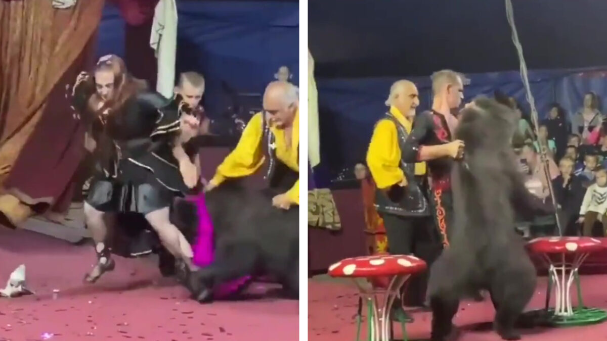 Russische circusbeer heeft er genoeg van en valt berentemster aan