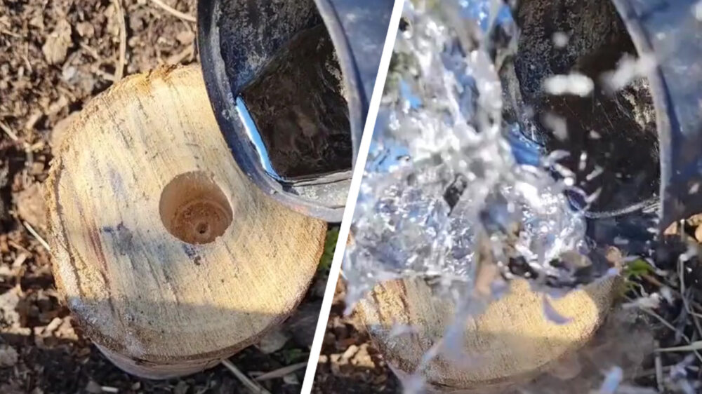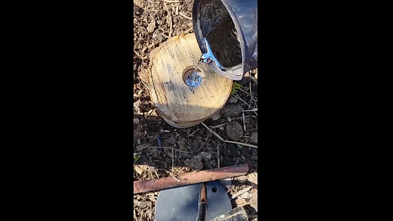 Pas op: vloeibaar metaal in een boomstronk gieten kan onverwachte gevolgen hebben