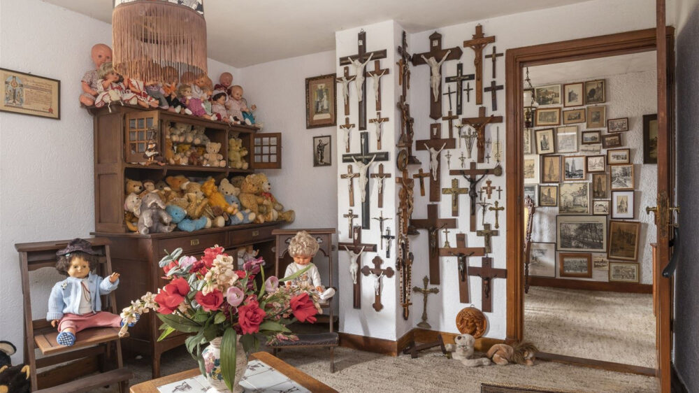 Deze keet ziet er namelijk uit alsof 'ie zo het het Conjuring-universum is getrokken. Donker? Check. Creepy poppen overal? Check. Honderden kruisbeelden? Ook check... Nou ja, wellicht is er nog iets van te maken. Eerst maar eens de buitenkant bekijken.