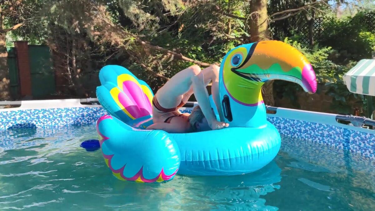 Alesya Laverycheva is ontzettend blij met haar opblaasdier voor in het zwembad
