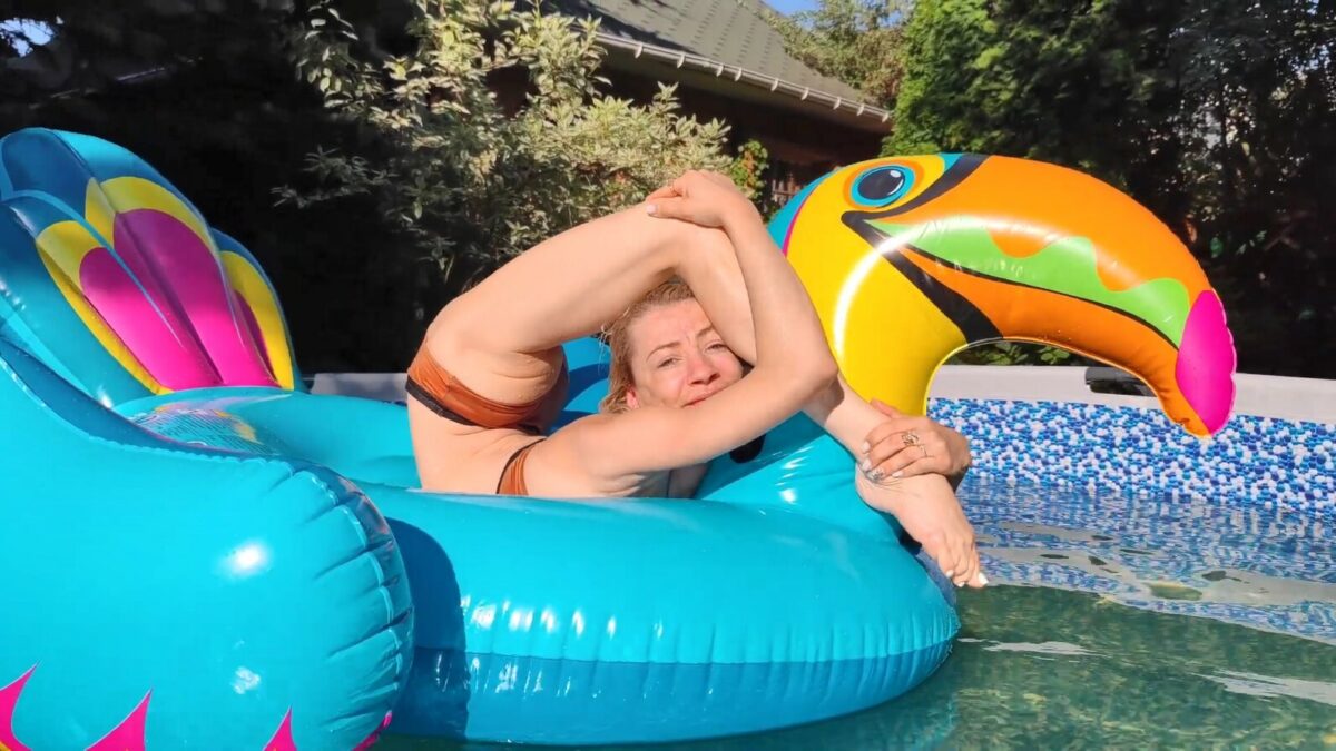 Helemaal nieuw is de Russische slangenmens Alesya Laverycheva niet, want ze heeft hier wel eens vaker in de knoop gezeten. Vandaag mag ze even ontspannen in het zwembad en kijk haar eens genieten.