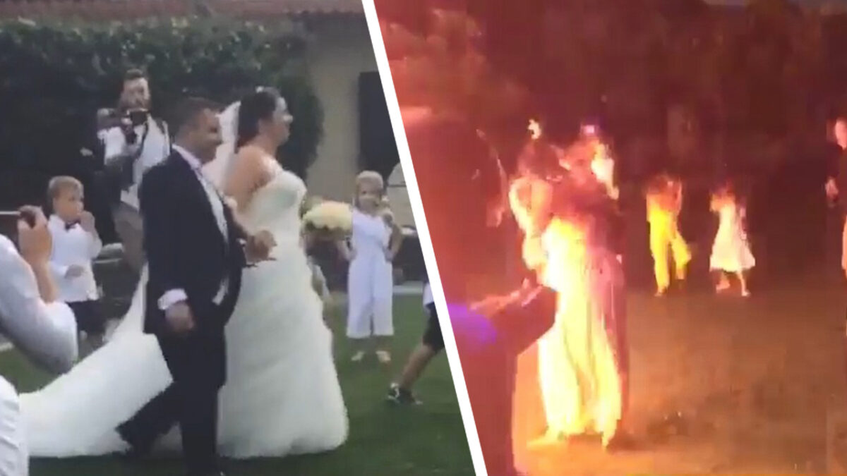 Bruiloft gaat pas echt los dankzij confettikanon in combinatie met hoogspanningskabels Fails