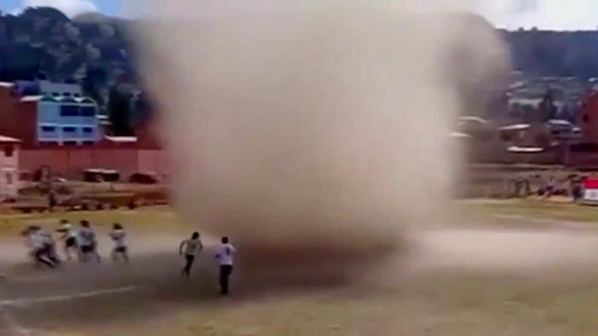 Spontaan wervelwindje komt ook ff gluren bij een amateurwedstrijd in Bolivia Sport