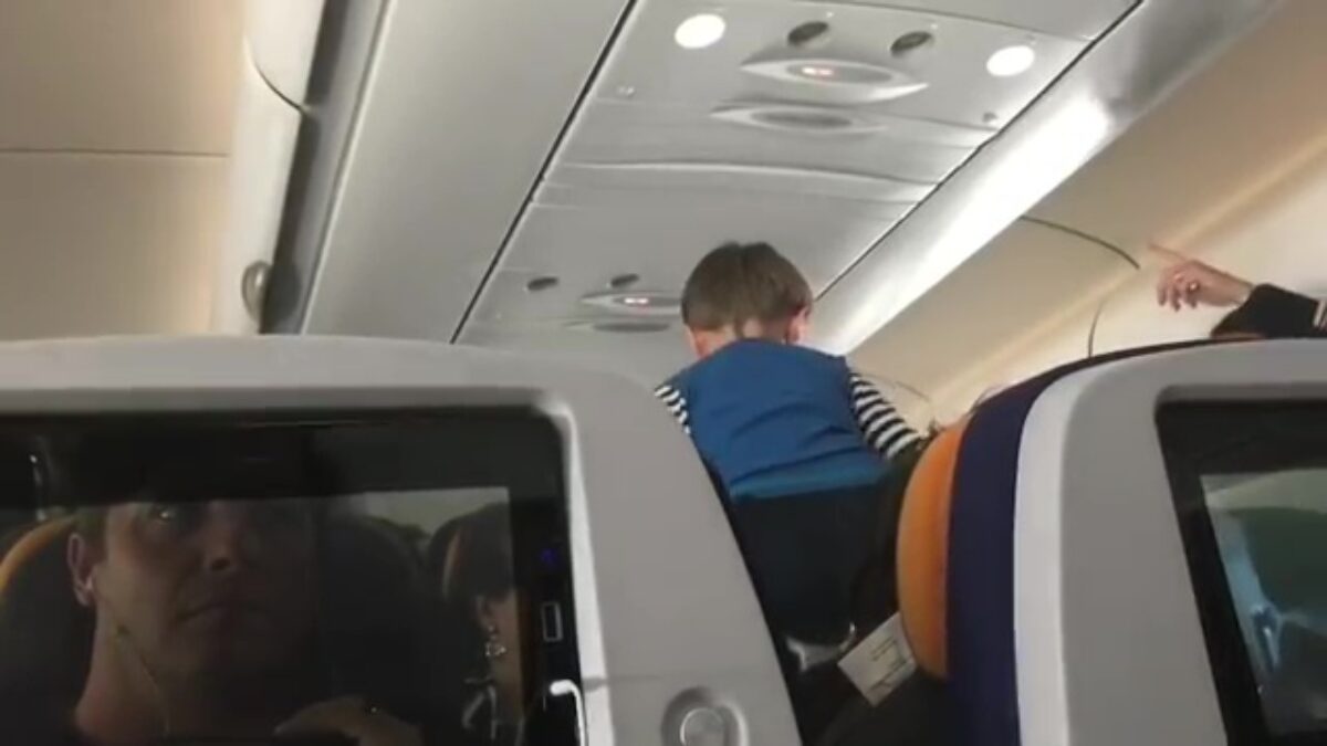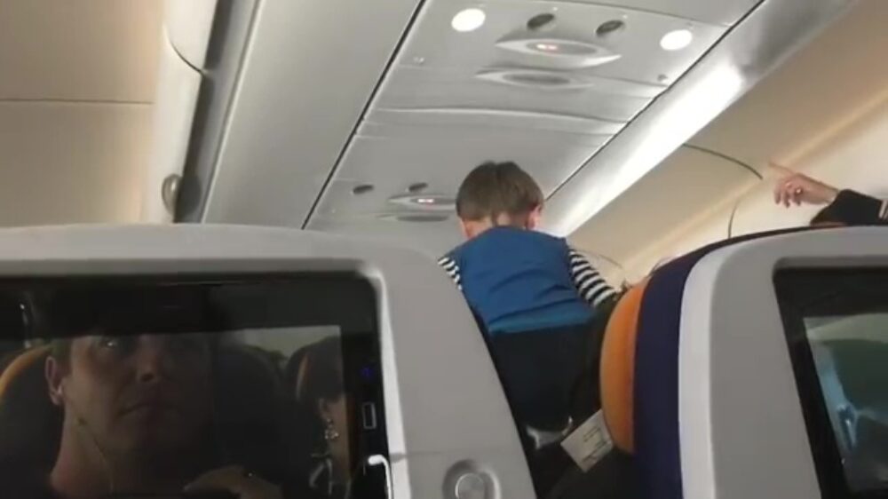 ADHD-koters in een vliegtuig zijn ongeveer net zo gewenst als aambeien tijdens het schijten, maar deze muppet is nog wel een paar gradaties erger. Gelukkig legde een van de passagiers de gehele vlucht vast.