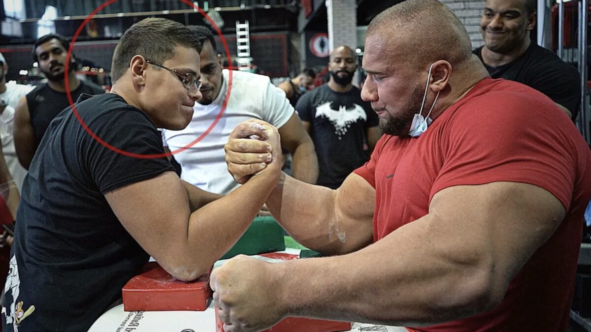 Even kennismaken met Aleksandr Beziazykovm; het 20-jarige armworstelmonster