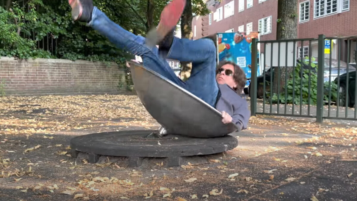 Hans Teeuwen leeft zich helemaal uit in de speeltuin