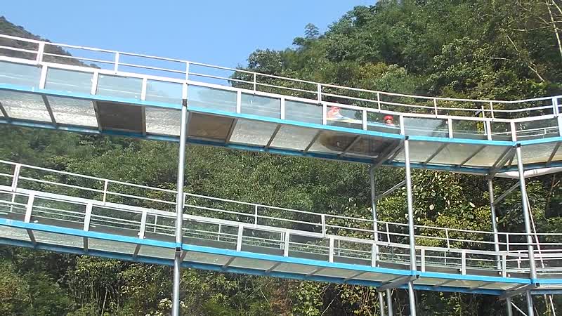 Mocht je tegelijkertijd eens willen genieten van een enorme waterglijbaan (480 meter) en van mooie uitzichten? Reis dan eens af naar Taiping in China, want daar kun je op snelheid door een compleet glazen slide door de bergen jagen.