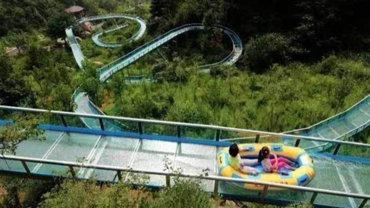 Mocht je tegelijkertijd eens willen genieten van een enorme waterglijbaan (480 meter) en van mooie uitzichten? Reis dan eens af naar Taiping in China, want daar kun je op snelheid door een compleet glazen slide door de bergen jagen.