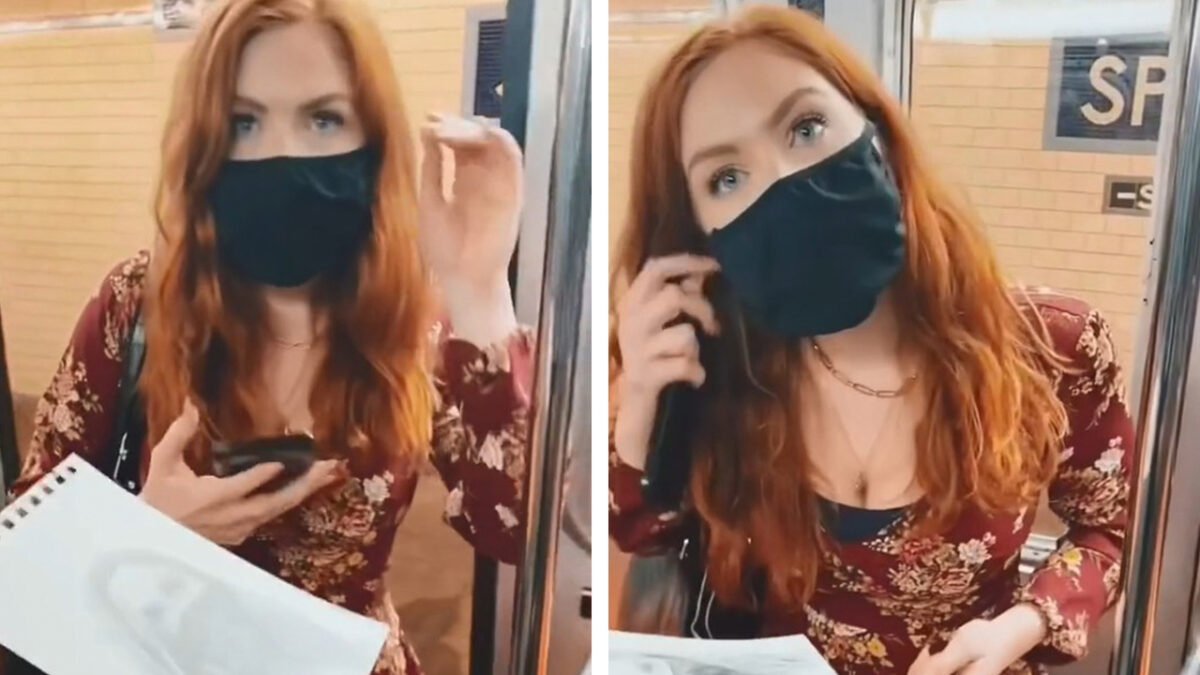 Kunstenaar Devon Rodriguez verrast roodharige in de metro
