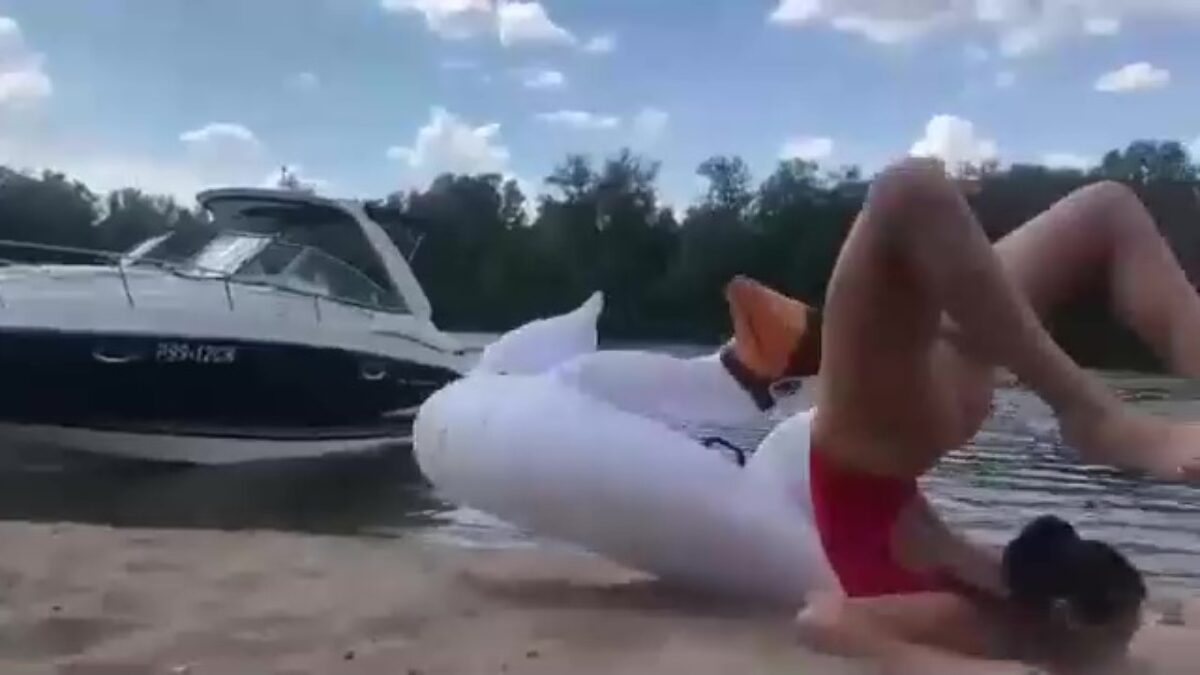 Wannabe-Pamela Anderson maakt prachtige schorpioen op het strand Fails