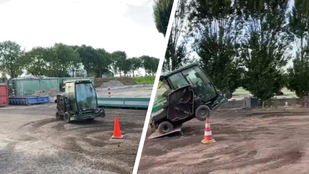 Gaat fout: met glans over de schans in een grasmaaier Fails