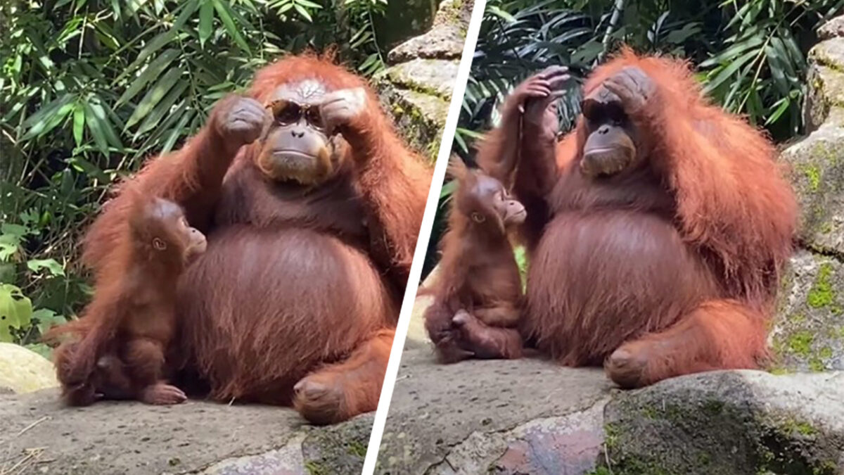 Orang-oetan met swag zet gevallen zonnebril van toerist op Dieren