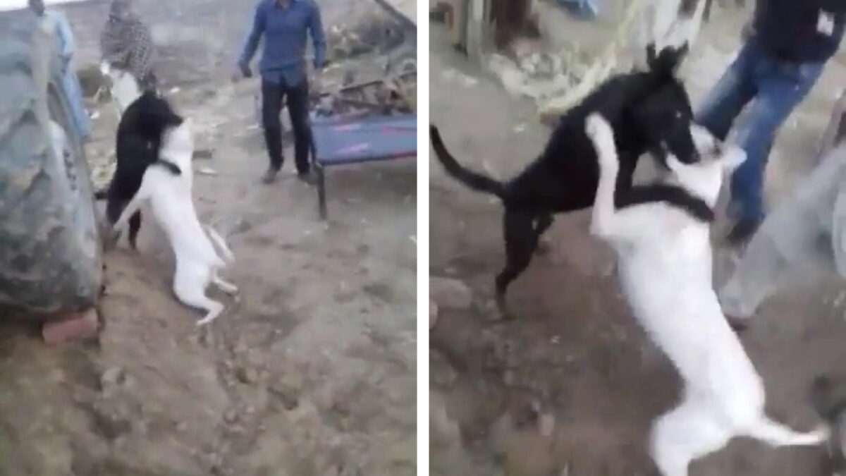 Een gevecht tussen twee honden hebben we al vaker gezien, maar deze afloop gaat nooit vervelen.