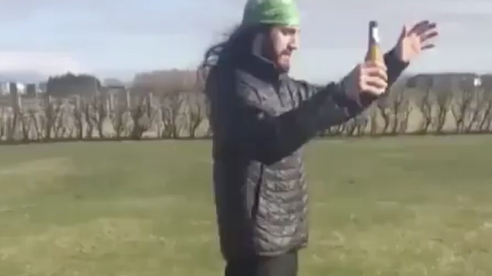 Let op: ik maak een backflip met een biertje in mijn hand!