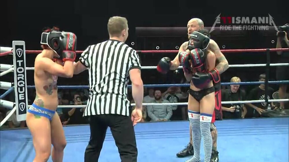 Gewoon boksen, maar na elke ronde moet er een kledingstuk uit. Degene die dit verzonnen heeft nomineren wij ter plekke voor een lintje.