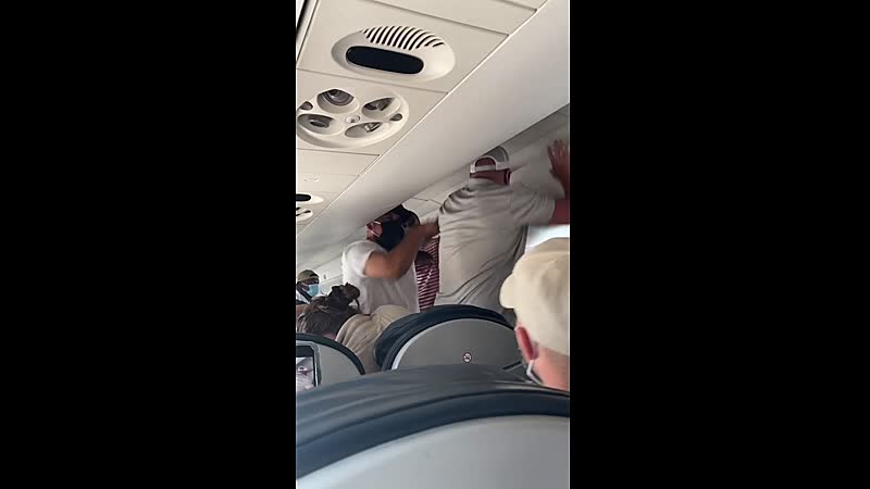 Toen het vliegtuig eindelijk in Austin landde en het bordje met de veiligheidsgordel uit was, sprongen beide mannen op en begonnen met elkaar te vechten, aldus een anonieme passagier