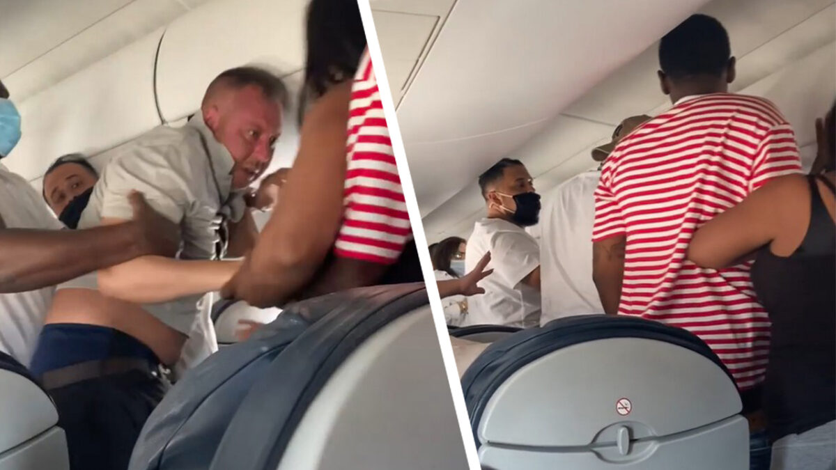 Toen het vliegtuig eindelijk in Austin landde en het bordje met de veiligheidsgordel uit was, sprongen beide mannen op en begonnen met elkaar te vechten, aldus een anonieme passagier
