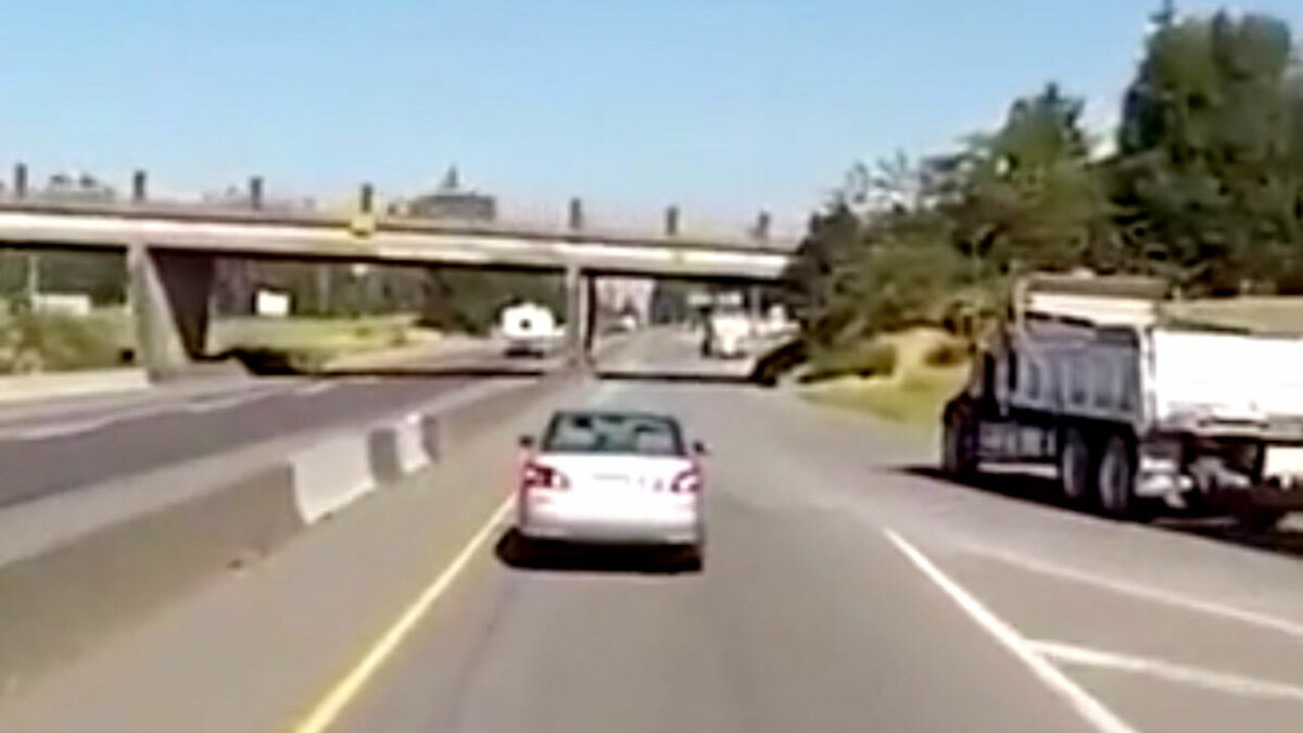 PANIEK PEEUW! Er voegt een vrachtwagen in, laat ik voor de zekerheid maar effe lekker op de rem trappen dan kan mij in ieder geval niets gebeuren. Wait for it...
