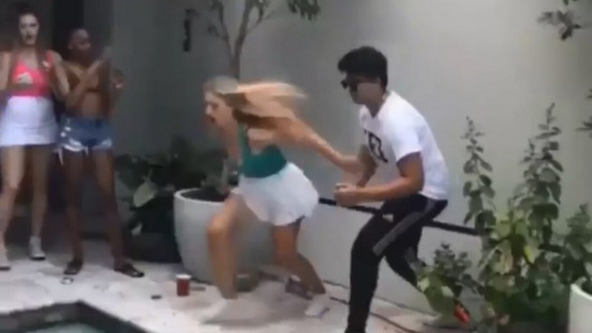 Blondje doet dappere poging om naar de overkant te springen Fails