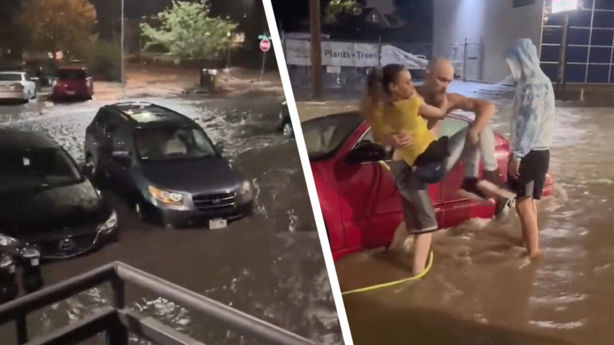Van de week zagen we al hoe een groepje vrienden vast kwam te zitten in een volgestroomde lift nadat ook de Amerikaanse stad Omaha door noodweer werd getroffen. Hoort erbij tegenwoordig, al die overstromingen. Ook deze Amerikaanse stad werd door zware regenval geteisterd en dit zorgde voor een veel bizarre beelden.